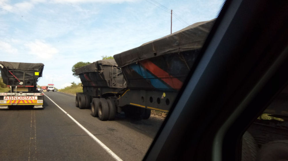 Onderweg komen we langs kolentransporten, enorme vrachtwagens vol steenkool, wil je die inhalen dan gaan de meesten op de vluchtstrook rijden. Dat doen ze niet alleen voor vrachtwagens die iets sneller gaan dan zij, maar ook heel vaak voor ons. Uiteraard bedanken we ze door even de knipperlichten aan te zetten.