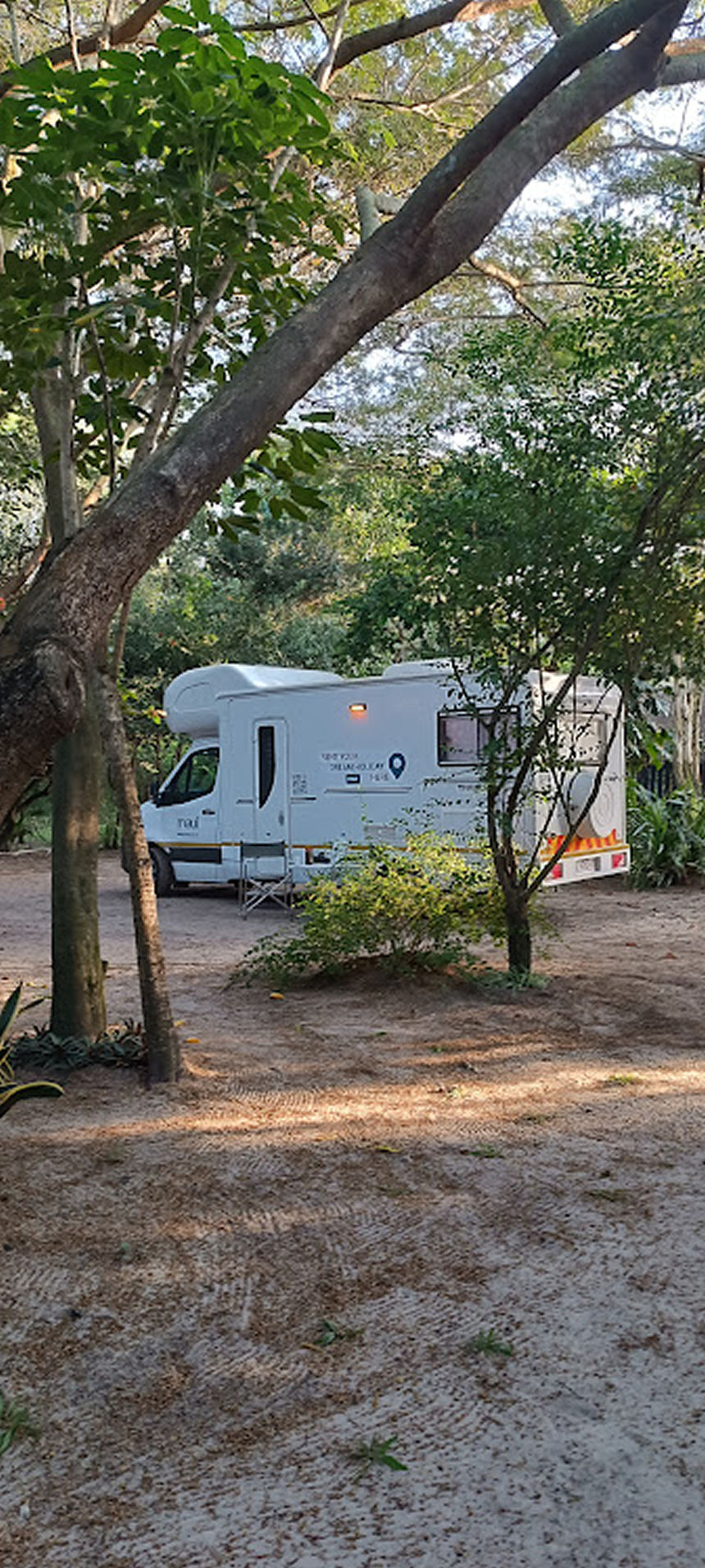 We zijn weer in Zuid Afrika en zijn aangekomen aan de kust, het was me de rit wel weer, in het begin een hele goede weg, maar ineens gaat de geasfalteerde weg over in een zandweg van 60 kilometer die ons bijna 4 uur kost, met een snelheid van 25 km per uur, sneller gaat gewoon niet. De camper heeft het dan ook zwaar te verduren. Het is al donker als we besluiten om een camping voor de nacht te zoeken, maar we halen ons doel toch niet op tijd.