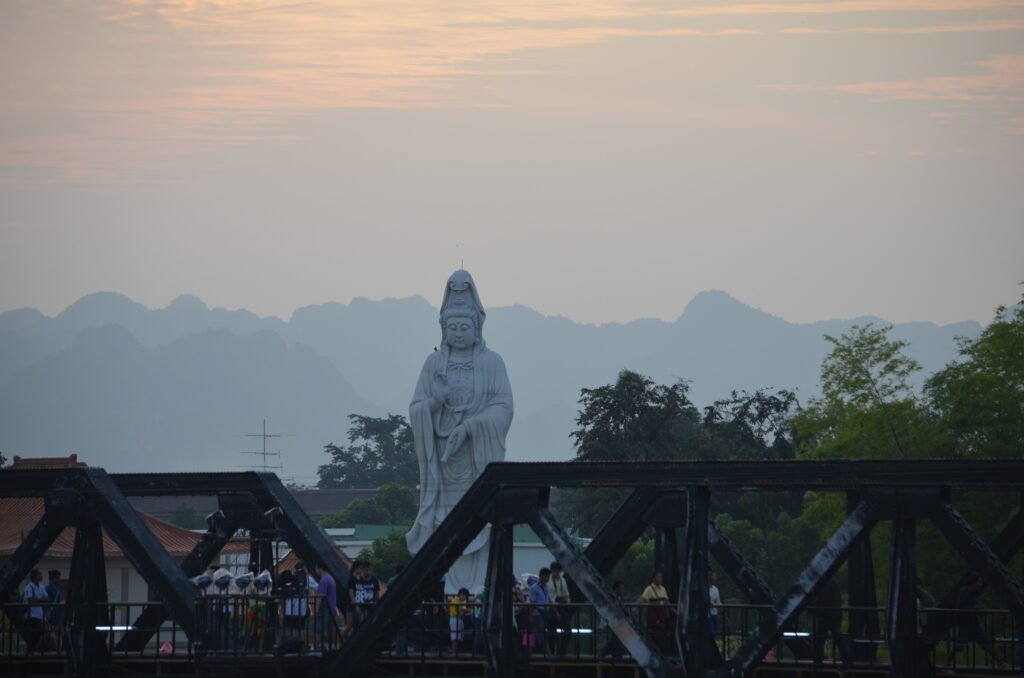 Uiteraard maak je dan een rit over de Birma spoorlijn, we zijn niet de enigen, het is wel een bijzondere ervaring, als we over de brug rijden die is aangelegd door krijgsgevangenen tijdens de Japanse bezetting.